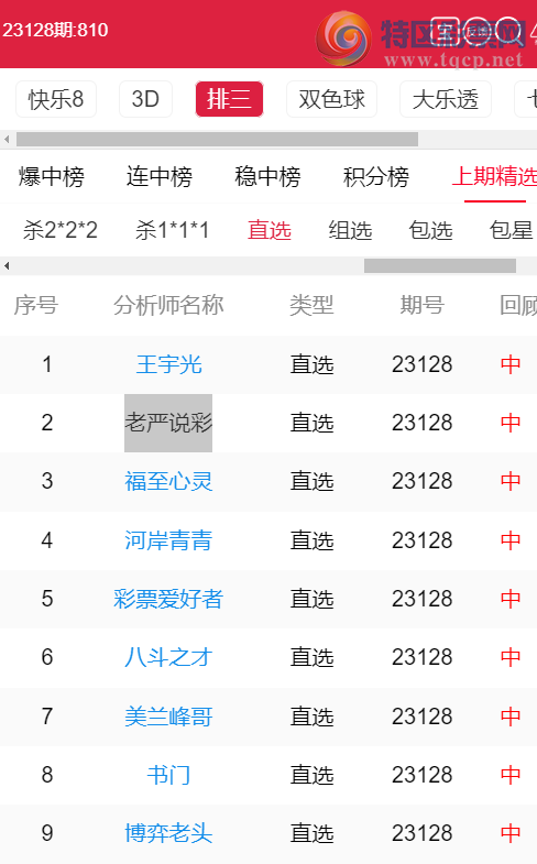 23129期:王宇光、老严说彩 等9位老师直选击中大奖!
