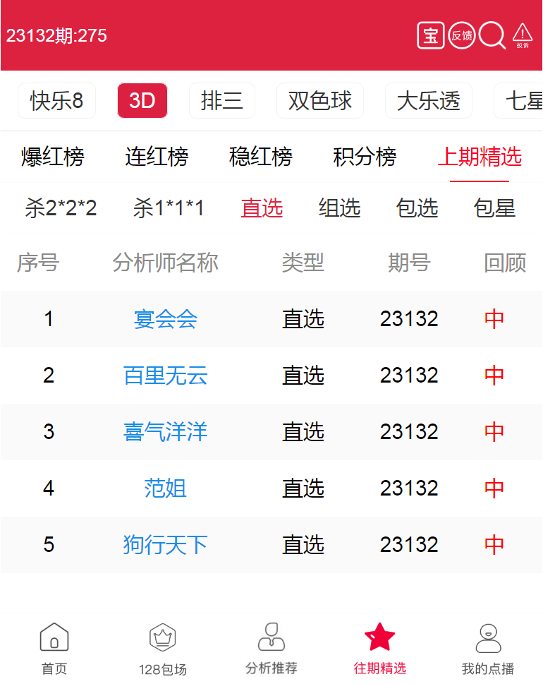 23133期:福彩3D 百里无云、喜气洋洋 等5位老师命中直选!