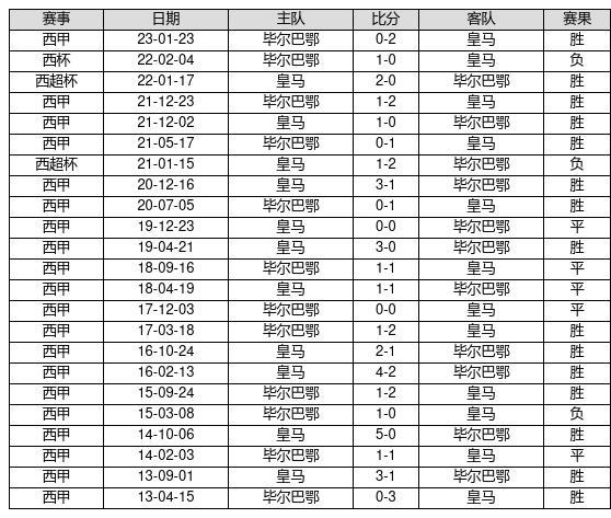 皇马 VS 毕尔巴鄂两队近10年的交战次数为23场,皇马15胜5平3负,赢球概率为65.2%,平局概率为21.7%,输球概率为13%。