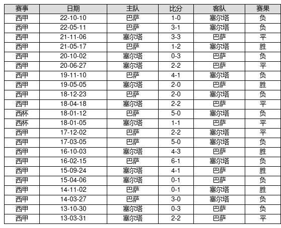 塞尔塔 VS 巴萨两队近10年的交战次数为22场,塞尔塔5胜6平11负,赢球概率为22.7%,平局概率为27.3%,输球概率为50%。