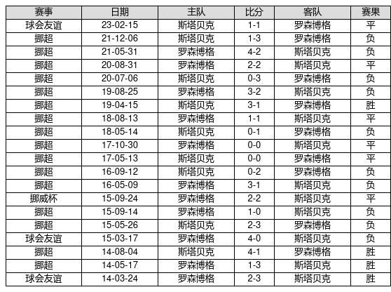 斯塔贝克 VS 罗森博格两队近10年的交战次数为20场,斯塔贝克4胜6平10负,赢球概率为20%,平局概率为30%,输球概率为50%。