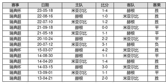 赫根 VS 米亚尔比两队近10年的交战次数为13场,赫根7胜5平1负,赢球概率为53.8%,平局概率为38.5%,输球概率为7.7%。