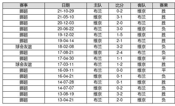 维京 VS 布兰两队近10年的交战次数为16场,维京8胜2平6负,赢球概率为50%,平局概率为12.5%,输球概率为37.5%。