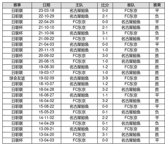 FC东京 VS 名古屋鲸鱼两队近10年的交战次数为24场,FC东京11胜8平5负,赢球概率为45.8%,平局概率为33.3%,输球概率为20.8%。