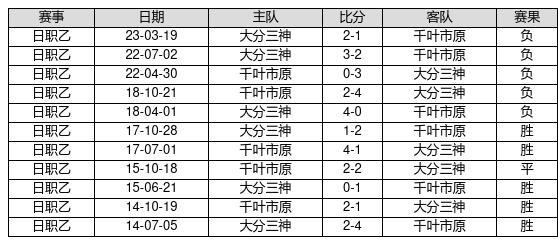 千叶市原 VS 大分三神两队近10年的交战次数为11场,千叶市原5胜1平5负,赢球概率为45.5%,平局概率为9.1%,输球概率为45.5%。