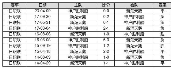 新泻天鹅 VS 神户胜利船两队近10年的交战次数为10场,新泻天鹅2胜3平5负,赢球概率为20%,平局概率为30%,输球概率为50%。
