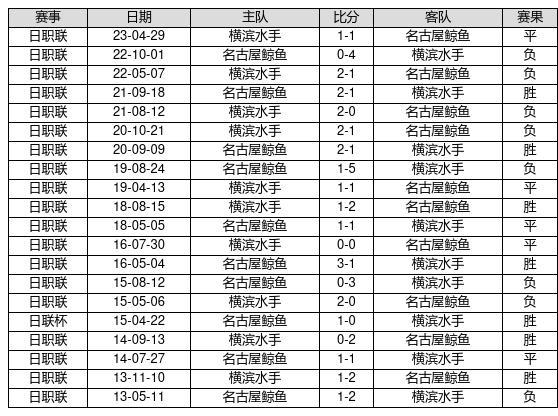 名古屋鲸鱼 VS 横滨水手两队近10年的交战次数为20场,名古屋鲸鱼7胜5平8负,赢球概率为35%,平局概率为25%,输球概率为40%。