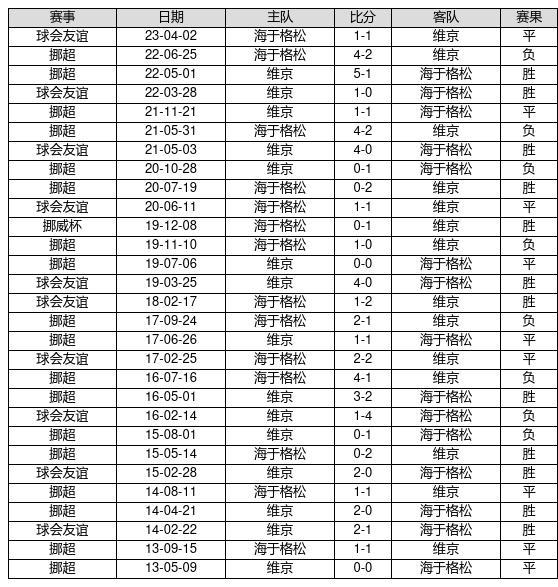 维京 VS 海于格松两队近10年的交战次数为29场,维京12胜9平8负,赢球概率为41.4%,平局概率为31%,输球概率为27.6%。