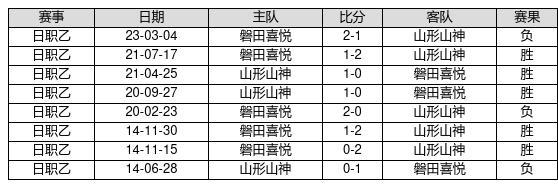 山形山神 VS 磐田喜悦两队近10年的交战次数为8场,山形山神5胜0平3负,赢球概率为62.5%,平局概率为0%,输球概率为37.5%。