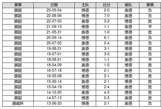 奥德 VS 博德两队近10年的交战次数为18场,奥德9胜2平7负,赢球概率为50%,平局概率为11.1%,输球概率为38.9%。