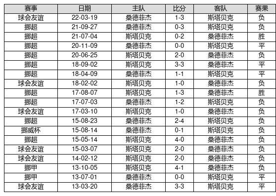 桑德菲杰 VS 斯塔贝克两队近10年的交战次数为19场,桑德菲杰2胜5平12负,赢球概率为10.5%,平局概率为26.3%,输球概率为63.2%。
