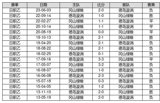 德岛漩涡 VS 冈山绿雉两队近10年的交战次数为17场,德岛漩涡4胜4平9负,赢球概率为23.5%,平局概率为23.5%,输球概率为52.9%。