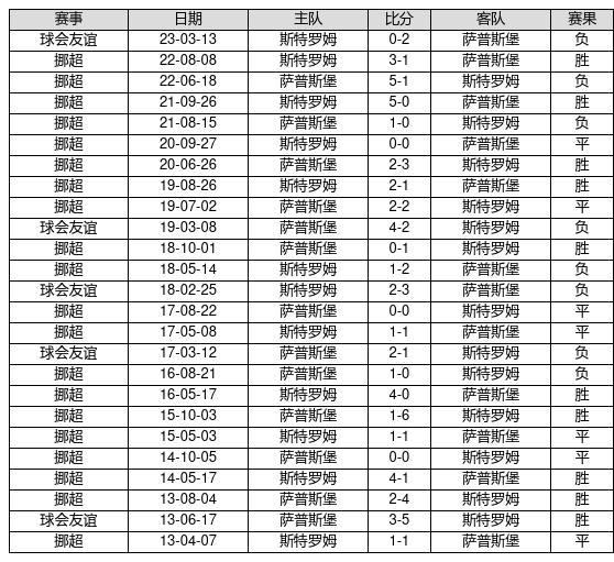 斯特罗姆 VS 萨普斯堡两队近10年的交战次数为25场,斯特罗姆10胜7平8负,赢球概率为40%,平局概率为28%,输球概率为32%。