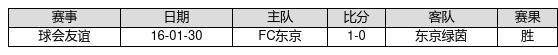 FC东京 VS 东京绿茵两队近10年的交战次数为1场,FC东京1胜0平0负,赢球概率为100%,平局概率为0%,输球概率为0%。