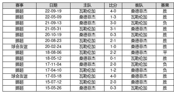 瓦勒伦加 VS 桑德菲杰两队近10年的交战次数为14场,瓦勒伦加10胜1平3负,赢球概率为71.4%,平局概率为7.1%,输球概率为21.4%。