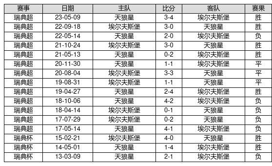 埃尔夫斯堡 VS 天狼星两队近10年的交战次数为16场,埃尔夫斯堡7胜3平6负,赢球概率为43.8%,平局概率为18.8%,输球概率为37.5%。