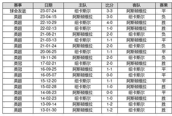 纽卡斯尔 VS 阿斯顿维拉两队近10年的交战次数为18场,纽卡斯尔7胜7平4负,赢球概率为38.9%,平局概率为38.9%,输球概率为22.2%。