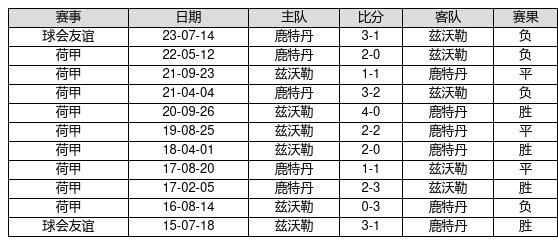 兹沃勒 VS 鹿特丹两队近10年的交战次数为11场,兹沃勒4胜3平4负,赢球概率为36.4%,平局概率为27.3%,输球概率为36.4%。