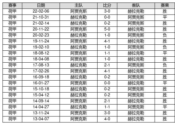 阿贾克斯 VS 赫拉克勒两队近10年的交战次数为19场,阿贾克斯12胜4平3负,赢球概率为63.2%,平局概率为21.1%,输球概率为15.8%。