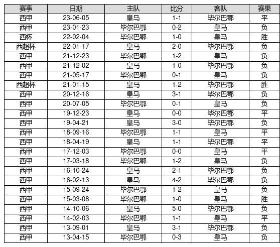 毕尔巴鄂 VS 皇马两队近10年的交战次数为24场,毕尔巴鄂3胜6平15负,赢球概率为12.5%,平局概率为25%,输球概率为62.5%。