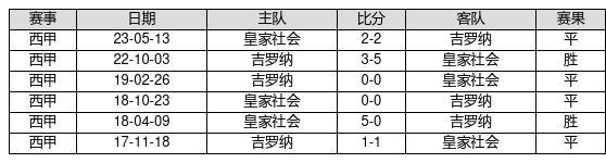皇家社会 VS 吉罗纳两队近10年的交战次数为6场,皇家社会2胜4平0负,赢球概率为33.3%,平局概率为66.7%,输球概率为0%。