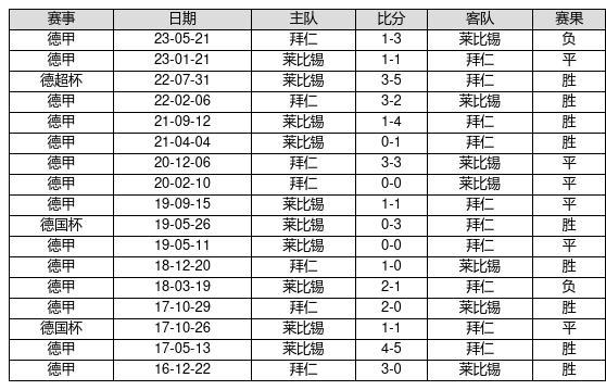 拜仁 VS 莱比锡两队近10年的交战次数为17场,拜仁9胜6平2负,赢球概率为52.9%,平局概率为35.3%,输球概率为11.8%。
