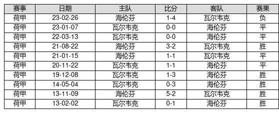 海伦芬 VS 瓦尔韦克两队近10年的交战次数为10场,海伦芬5胜4平1负,赢球概率为50%,平局概率为40%,输球概率为10%。