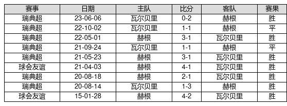 赫根 VS 瓦尔贝里两队近10年的交战次数为9场,赫根7胜2平0负,赢球概率为77.8%,平局概率为22.2%,输球概率为0%。
