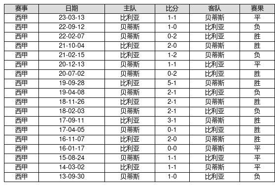 比利亚 VS 贝蒂斯两队近10年的交战次数为18场,比利亚8胜5平5负,赢球概率为44.4%,平局概率为27.8%,输球概率为27.8%。