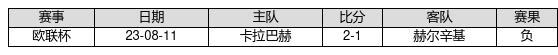 赫尔辛基 VS 卡拉巴赫两队近10年的交战次数为1场,赫尔辛基0胜0平1负,赢球概率为0%,平局概率为0%,输球概率为100%。