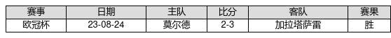 加拉塔萨雷 VS 莫尔德两队近10年的交战次数为1场,加拉塔萨雷1胜0平0负,赢球概率为100%,平局概率为0%,输球概率为0%。