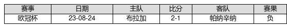 帕纳辛纳 VS 布拉加两队近10年的交战次数为1场,帕纳辛纳0胜0平1负,赢球概率为0%,平局概率为0%,输球概率为100%。