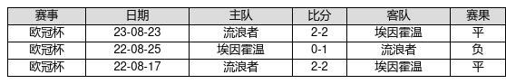 埃因霍温 VS 流浪者两队近10年的交战次数为3场,埃因霍温0胜2平1负,赢球概率为0%,平局概率为66.7%,输球概率为33.3%。