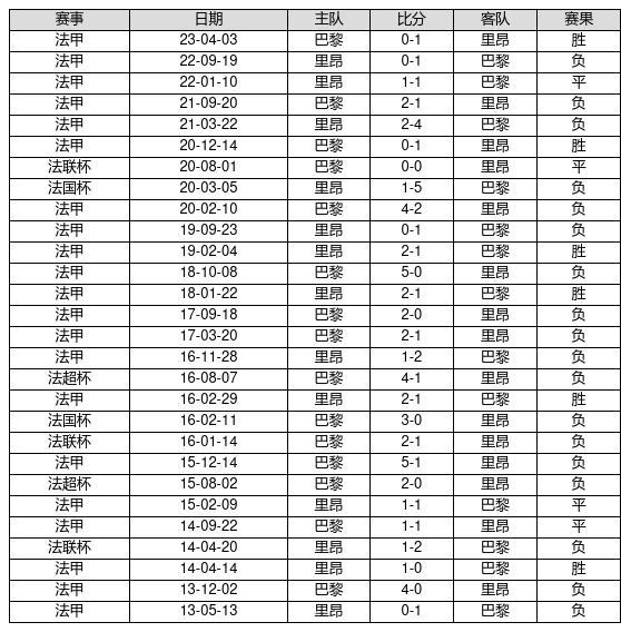 里昂 VS 巴黎两队近10年的交战次数为28场,里昂6胜4平18负,赢球概率为21.4%,平局概率为14.3%,输球概率为64.3%。