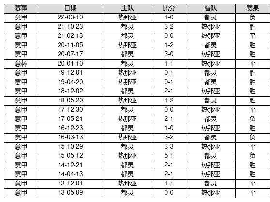都灵 VS 热那亚两队近10年的交战次数为20场,都灵10胜6平4负,赢球概率为50%,平局概率为30%,输球概率为20%。