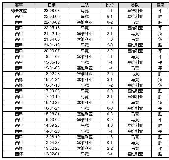 马竞 VS 塞维利亚两队近10年的交战次数为26场,马竞11胜10平5负,赢球概率为42.3%,平局概率为38.5%,输球概率为19.2%。