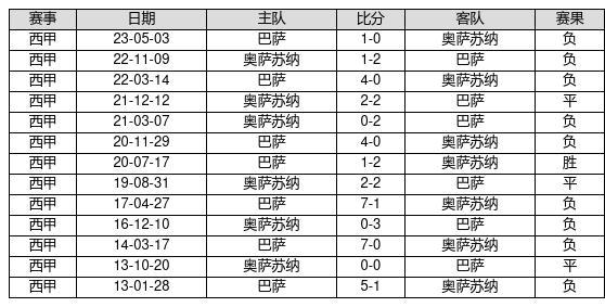 奥萨苏纳 VS 巴萨两队近10年的交战次数为13场,奥萨苏纳1胜3平9负,赢球概率为7.7%,平局概率为23.1%,输球概率为69.2%。