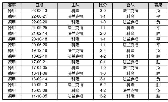 法兰克福 VS 科隆两队近10年的交战次数为16场,法兰克福6胜4平6负,赢球概率为37.5%,平局概率为25%,输球概率为37.5%。
