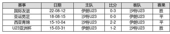 沙特U23 VS 伊朗U23两队近10年的交战次数为4场,沙特U232胜2平0负,赢球概率为50%,平局概率为50%,输球概率为0%。