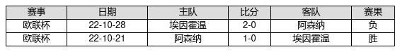 阿森纳 VS 埃因霍温两队近10年的交战次数为2场,阿森纳1胜0平1负,赢球概率为50%,平局概率为0%,输球概率为50%。