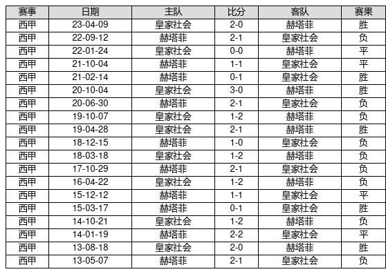 皇家社会 VS 赫塔菲两队近10年的交战次数为19场,皇家社会6胜4平9负,赢球概率为31.6%,平局概率为21.1%,输球概率为47.4%。