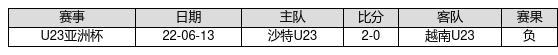越南U23 VS 沙特U23两队近10年的交战次数为1场,越南U230胜0平1负,赢球概率为0%,平局概率为0%,输球概率为100%。