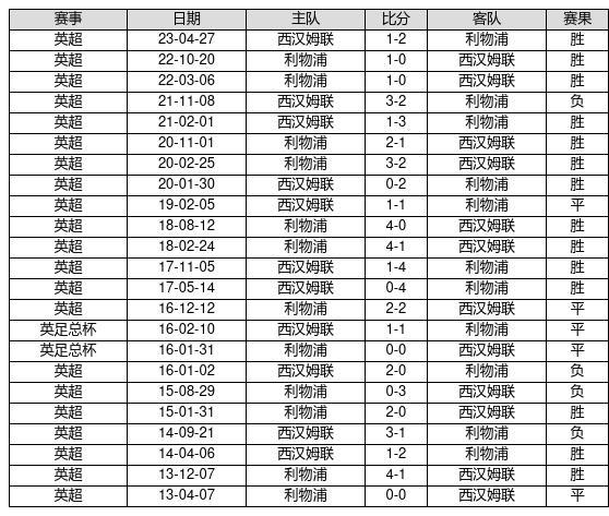 利物浦 VS 西汉姆联两队近10年的交战次数为23场,利物浦14胜5平4负,赢球概率为60.9%,平局概率为21.7%,输球概率为17.4%。