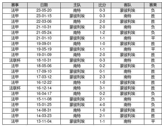 南特 VS 蒙彼利埃两队近10年的交战次数为21场,南特11胜3平7负,赢球概率为52.4%,平局概率为14.3%,输球概率为33.3%。