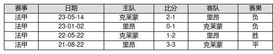 里昂 VS 克莱蒙两队近10年的交战次数为4场,里昂1胜1平2负,赢球概率为25%,平局概率为25%,输球概率为50%。