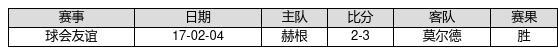 莫尔德 VS 赫根两队近10年的交战次数为1场,莫尔德1胜0平0负,赢球概率为100%,平局概率为0%,输球概率为0%。