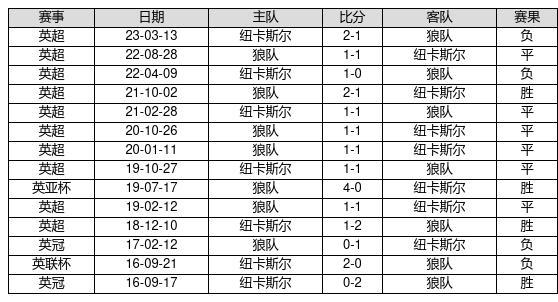 狼队 VS 纽卡斯尔两队近10年的交战次数为14场,狼队4胜6平4负,赢球概率为28.6%,平局概率为42.9%,输球概率为28.6%。