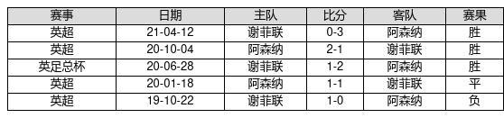 阿森纳 VS 谢菲联两队近10年的交战次数为5场,阿森纳3胜1平1负,赢球概率为60%,平局概率为20%,输球概率为20%。