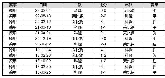 莱比锡 VS 科隆两队近10年的交战次数为12场,莱比锡5胜5平2负,赢球概率为41.7%,平局概率为41.7%,输球概率为16.7%。