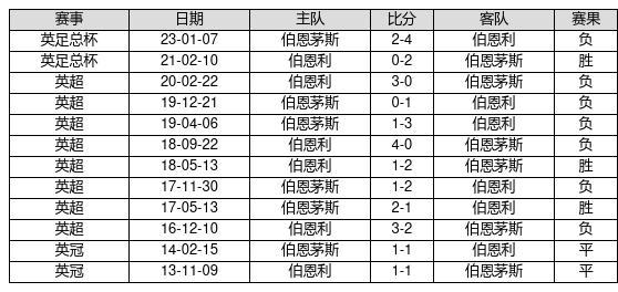 伯恩茅斯 VS 伯恩利两队近10年的交战次数为12场,伯恩茅斯3胜2平7负,赢球概率为25%,平局概率为16.7%,输球概率为58.3%。